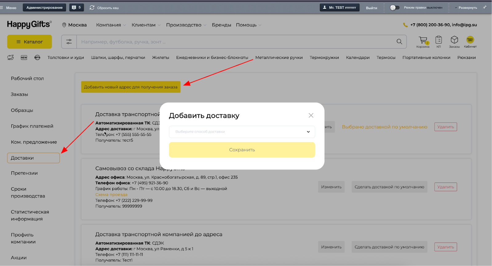 ■ Можно создать шаблон вручную в Личном кабинете (ЛК). Перейдите по ссылке: https://happygifts.ru/gd_cab/personal/transportation/