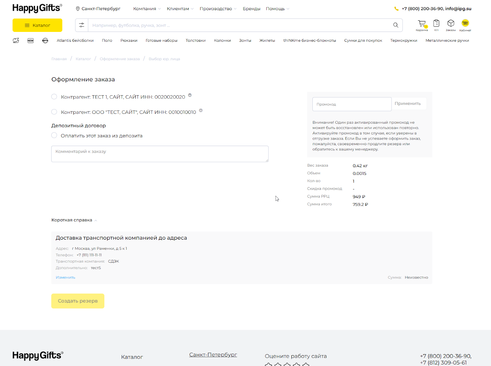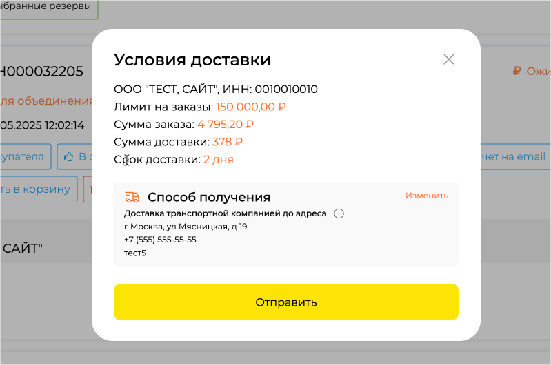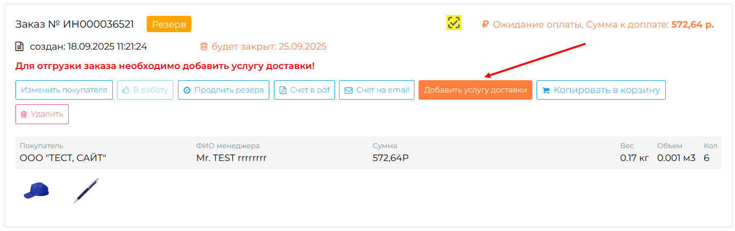 ■ Если вы оформили резерв без доставки, но при отгрузке выбрали вариант «Доставка до терминала ТК» и сумма вашего заказа меньше 10 000 ₽, то в ваш счет будет добавлена стоимость этой услуги.