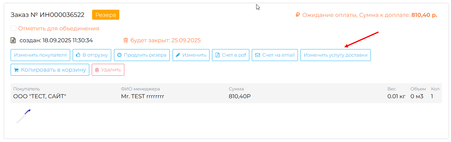 ■ Примечание 2: при объединении заказов услуга доставки сбрасывается.